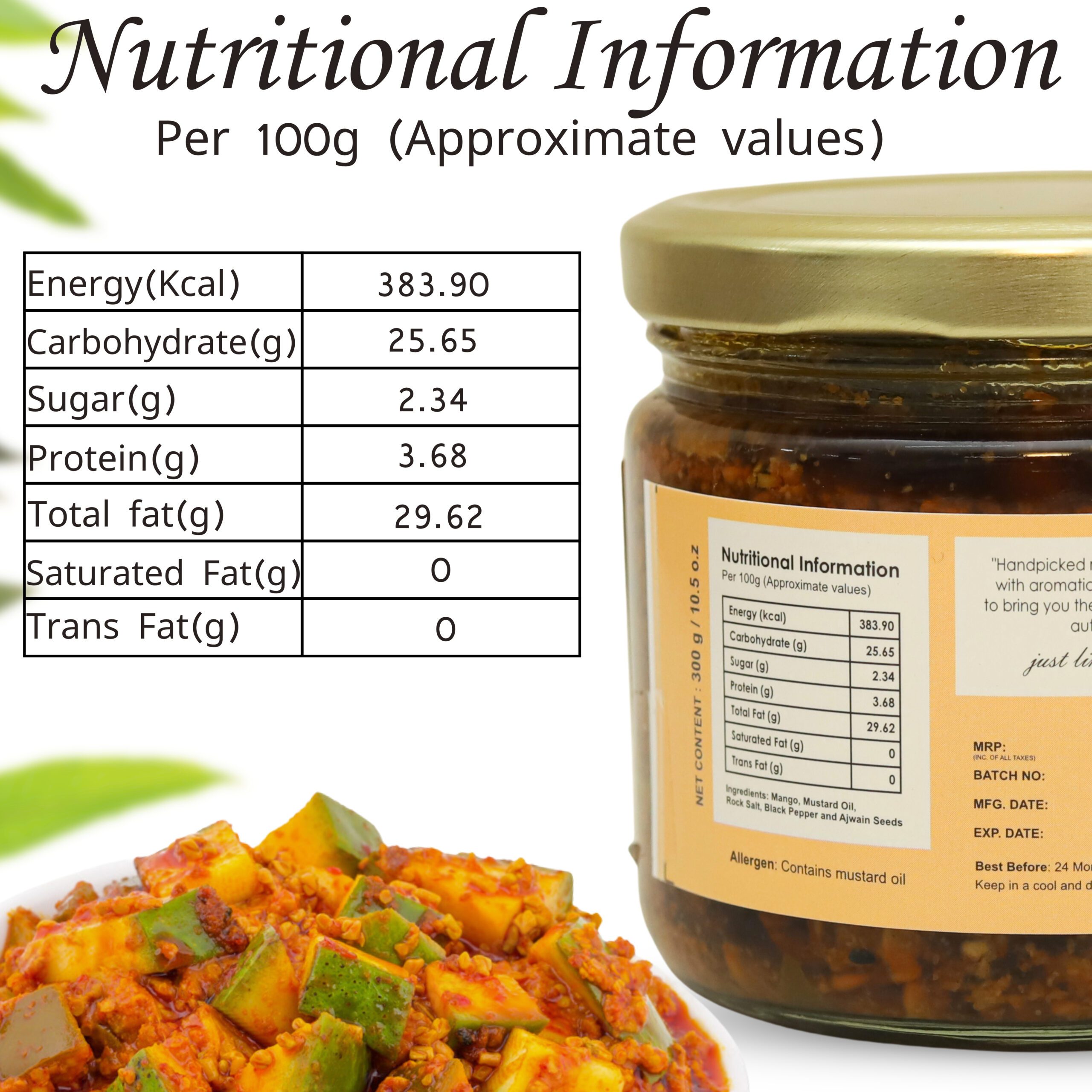 Made in small batches using traditional methods, our pickle contains zero preservatives, no artificial colors, and no synthetic additives. Each jar bursts with the robust taste of mustard oil, fenugreek, fennel, turmeric, and red chili—classic ingredients known for their flavor and health benefits.