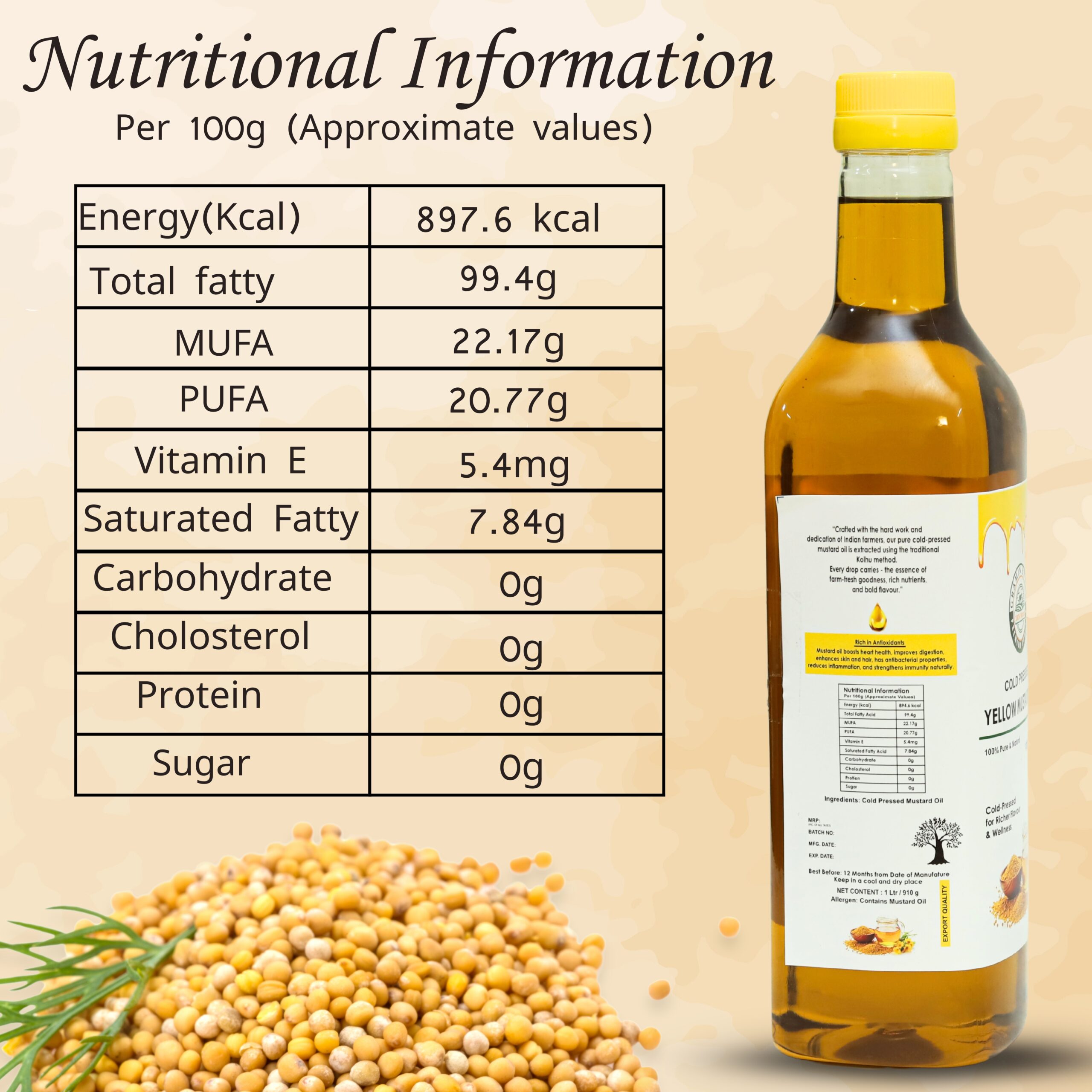 100% Pure & Natural Cold-Pressed Yellow Mustard Oil
