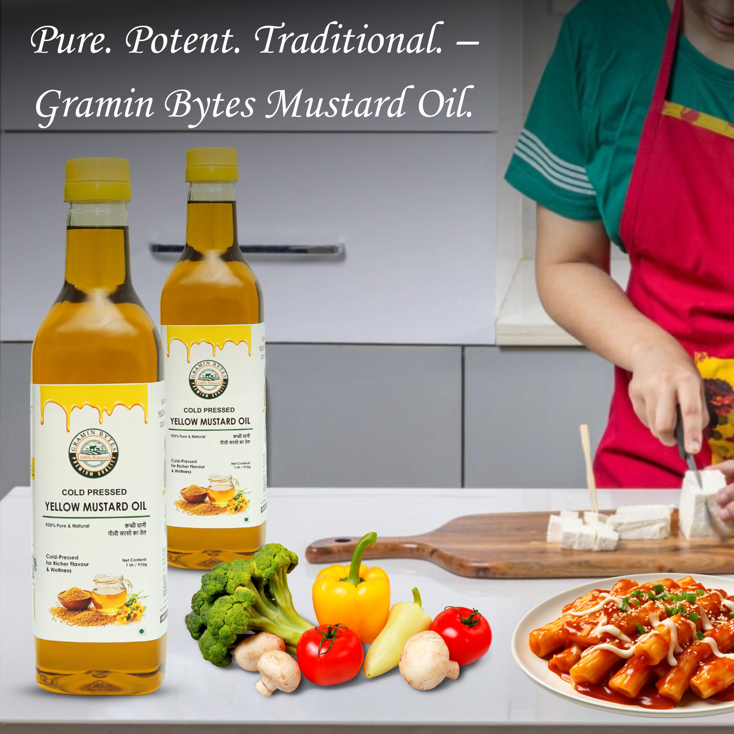 Whether you’re frying, sautéing, or preparing homemade pickles, Gramin Bites® Yellow Mustard Oil brings purity, tradition, and wellness straight to your kitchen.
